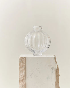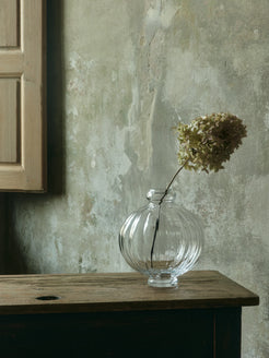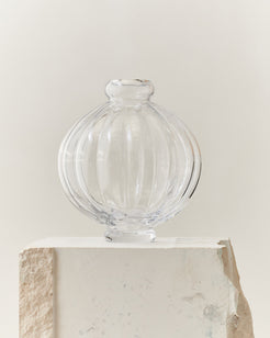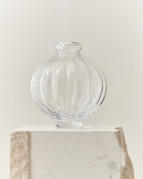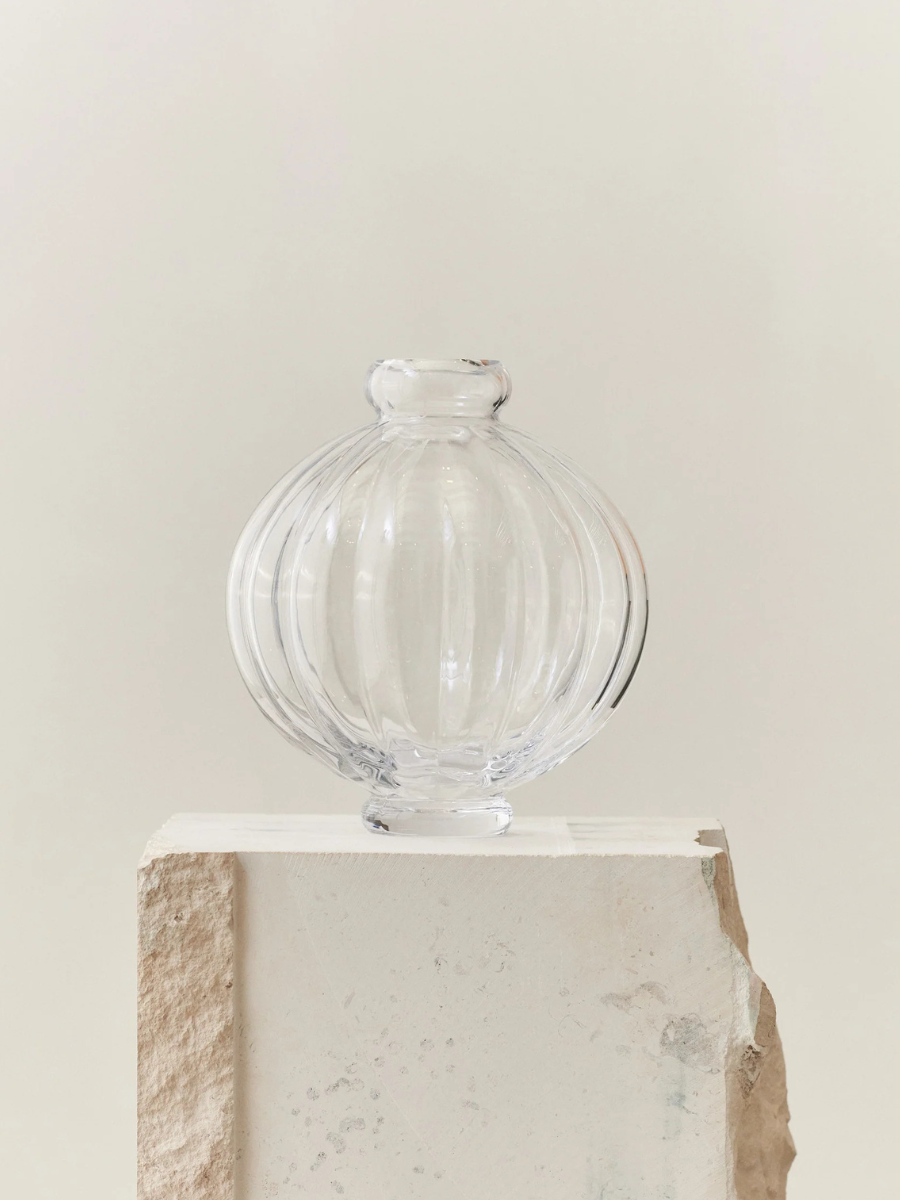 En ikonisk designvase i glass. Balloon Vase 01 fra danske Louise Roe er en moderne klassiker – kjent for sin skulpturelle form og håndverksmessige kvalitet. Denne versjonen i klart glass tilfører karakter, dybde og et sofistikert blikkfang til både blomster og interiør.