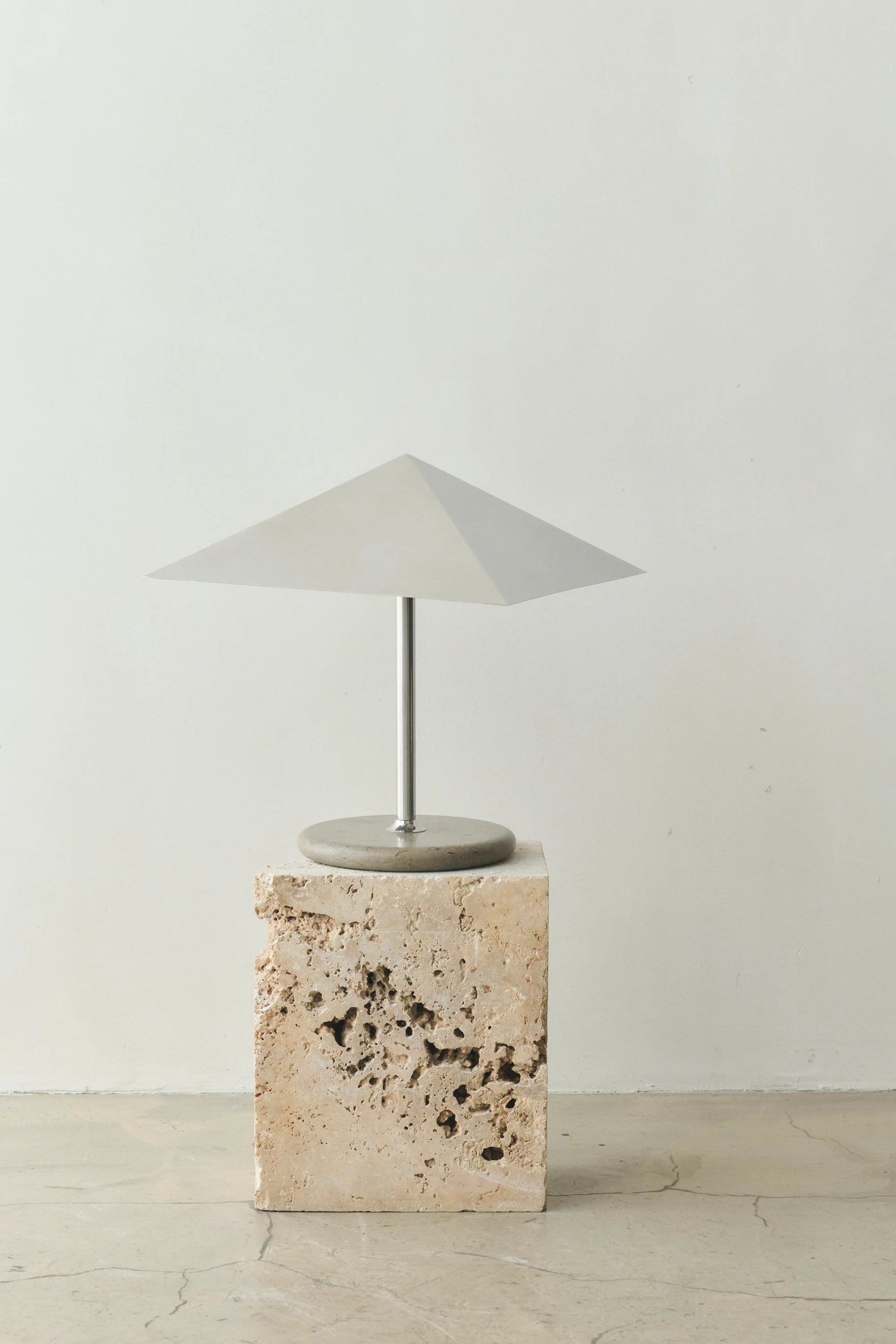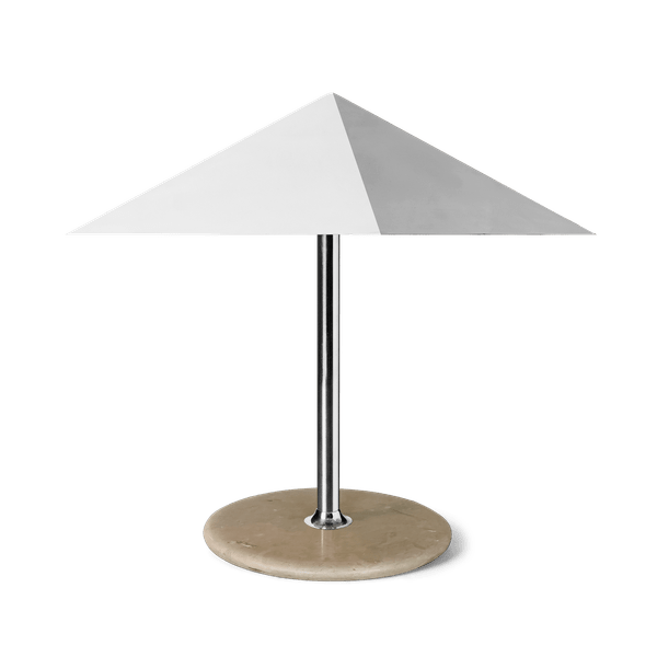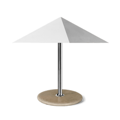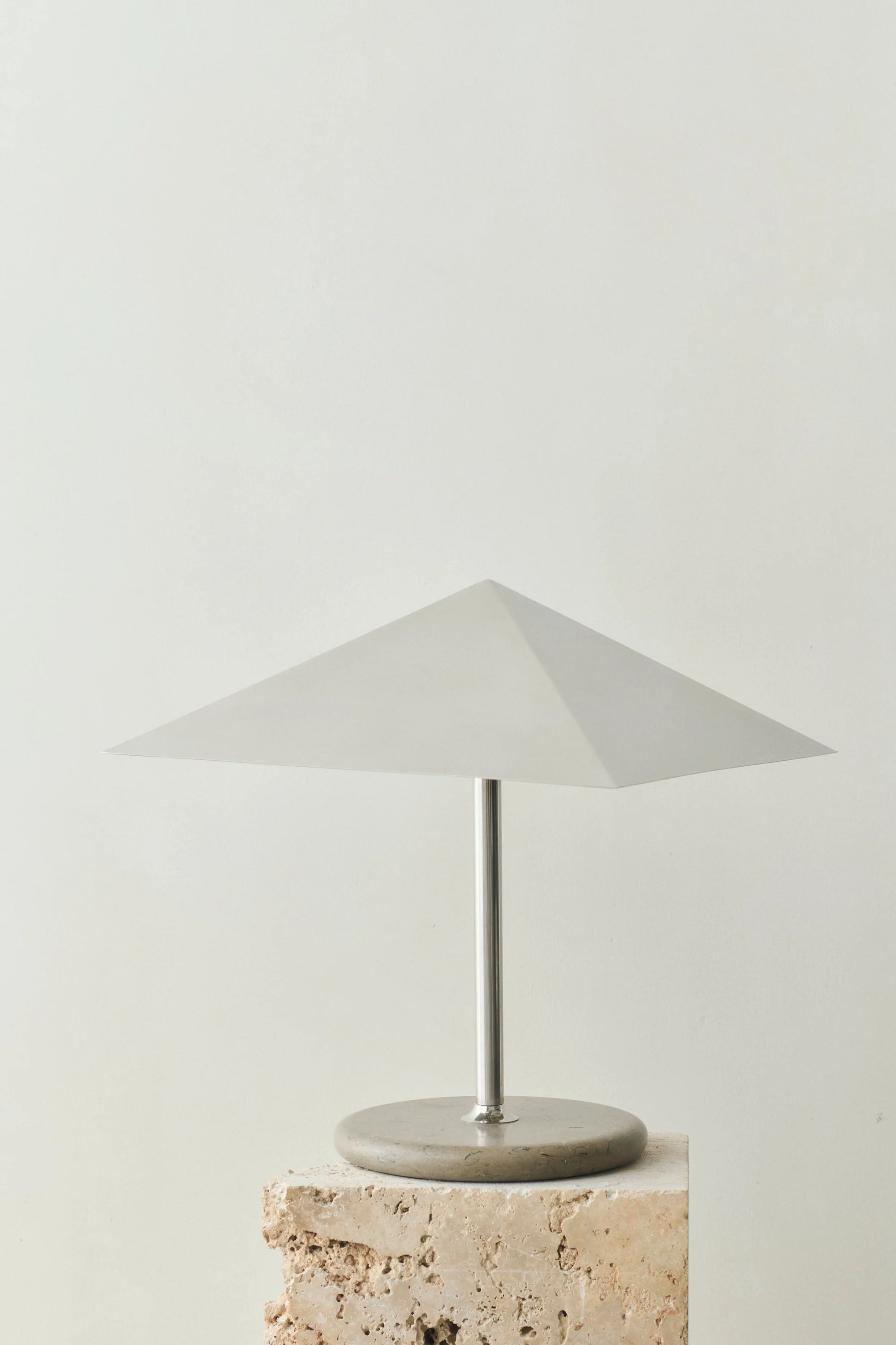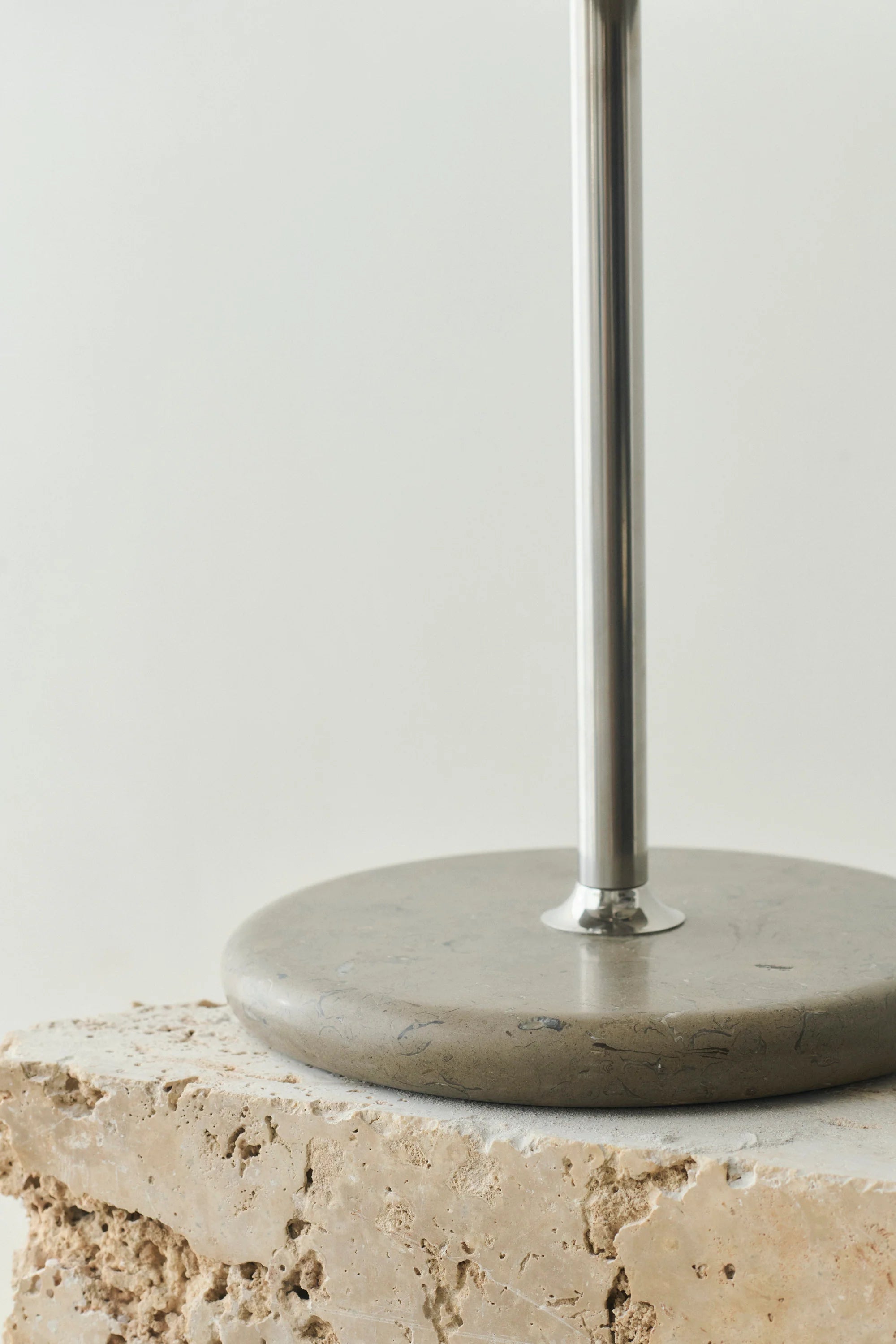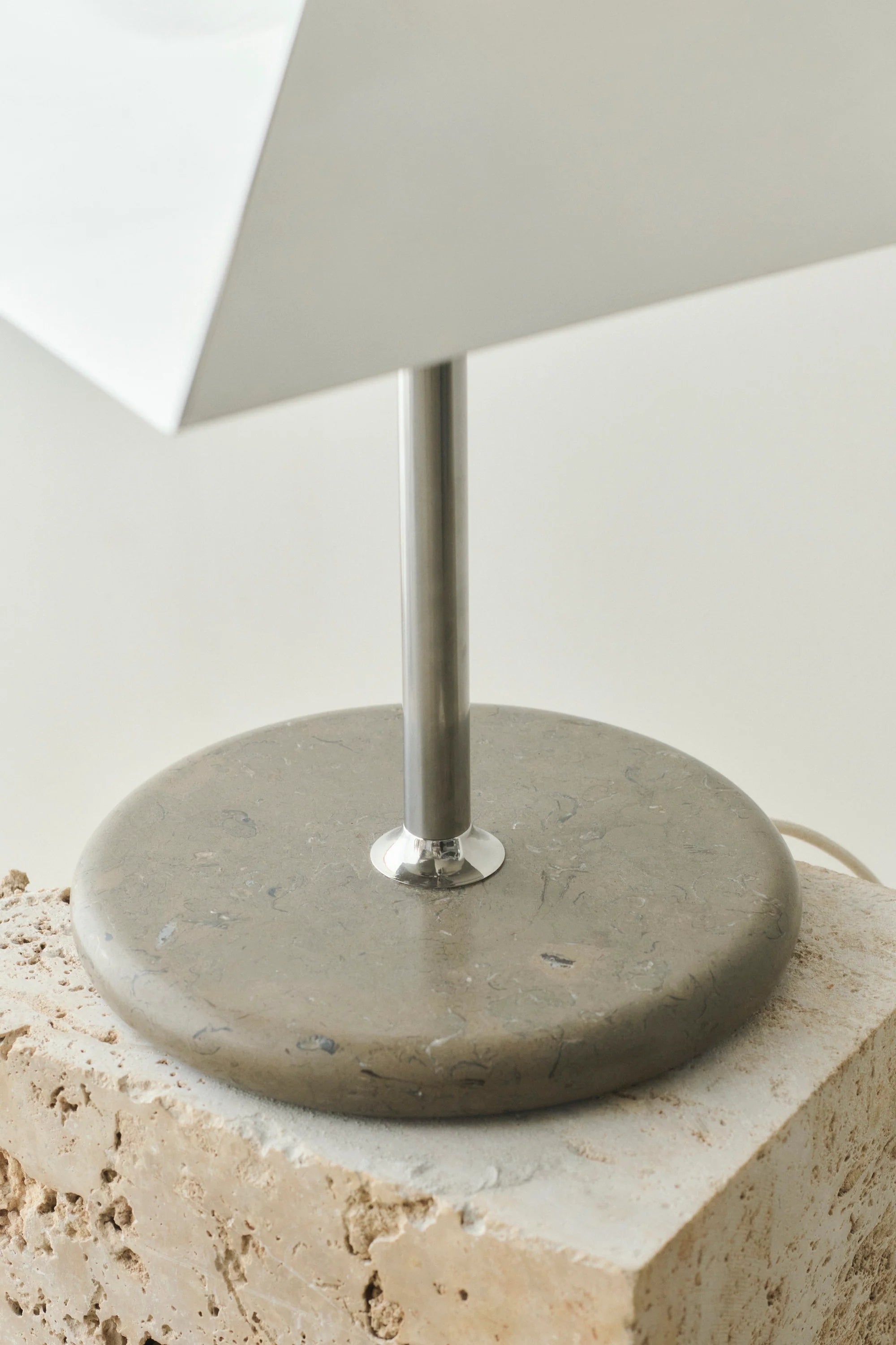 Louise Roe Loft Lamp er en skulpturell bordlampe som kombinerer tidløs design med moderne materialvalg. En slank metallstamme stiger fra en massiv marmorsokkel og bærer en reflekterende metallskjerm som gir en lun og behagelig belysning. Lampens form henter inspirasjon fra et loft, der lyskilden er innrammet i et åpent og luftig uttrykk.