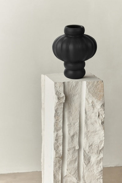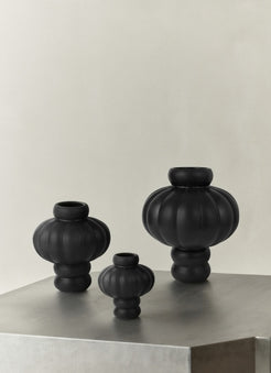 Liten i størrelse, men stor i uttrykk – Louise Roe Balloon Vase 02 utmerker seg med sin skulpturelle tilstedeværelse. De myke, organiske konturene gir vasen et elegant og luftig uttrykk, som minner om en ballong i rolig bevegelse. Formen smalner inn ved basen, folder seg mykt ut i midten og avsluttes med en smal åpning – en harmonisk og innbydende silhuett.