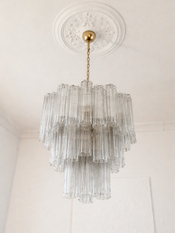 Luce 3-layer Lysekrone – MarbleMade Studio Eksklusiv 70-tallsinspirert lysekrone med tre lag håndteksturerte glassrør...