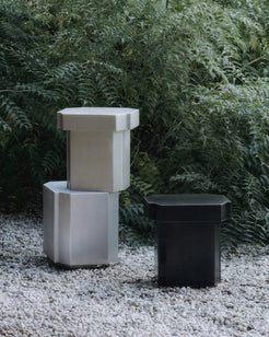FUNKI Stool 01 er en del av den skulpturelle møbelserien fra Louise Roe, der funksjonalisme møter brutalistisk design. Krakken er håndsveiset av dyktige håndverkere i Portugal og fremstår som et allsidig møbel – like egnet som krakk, nattbord eller et lite sidebord.