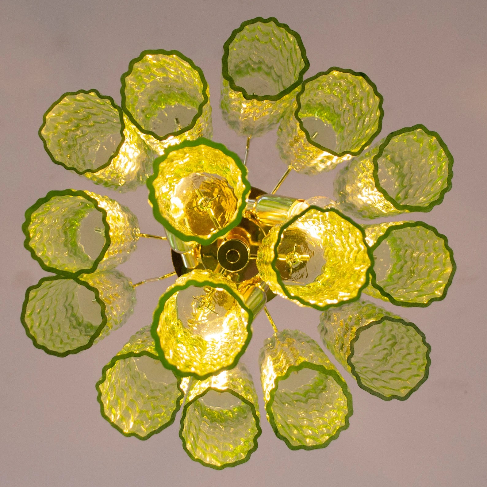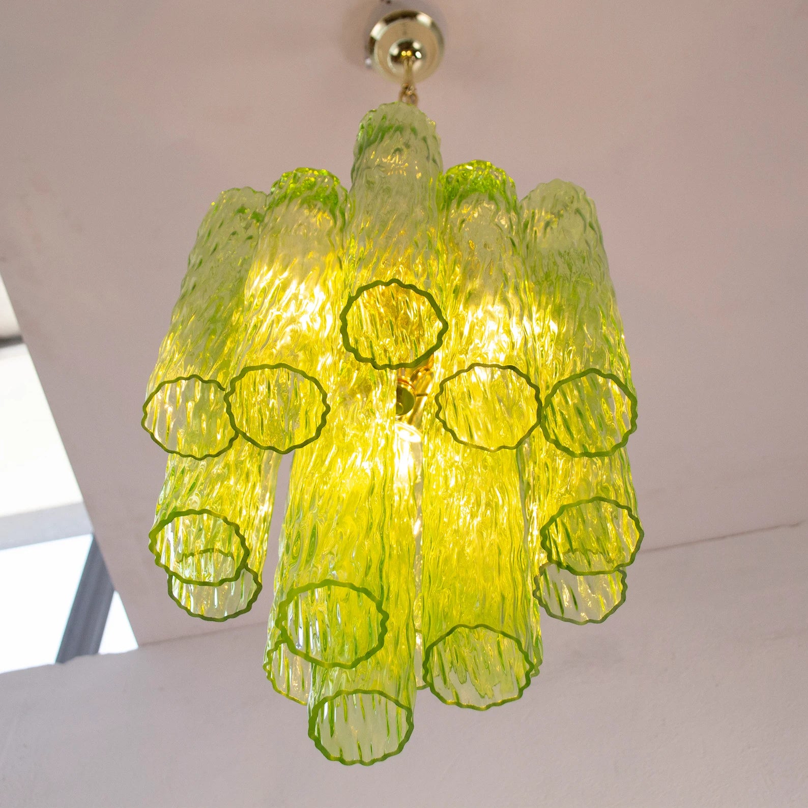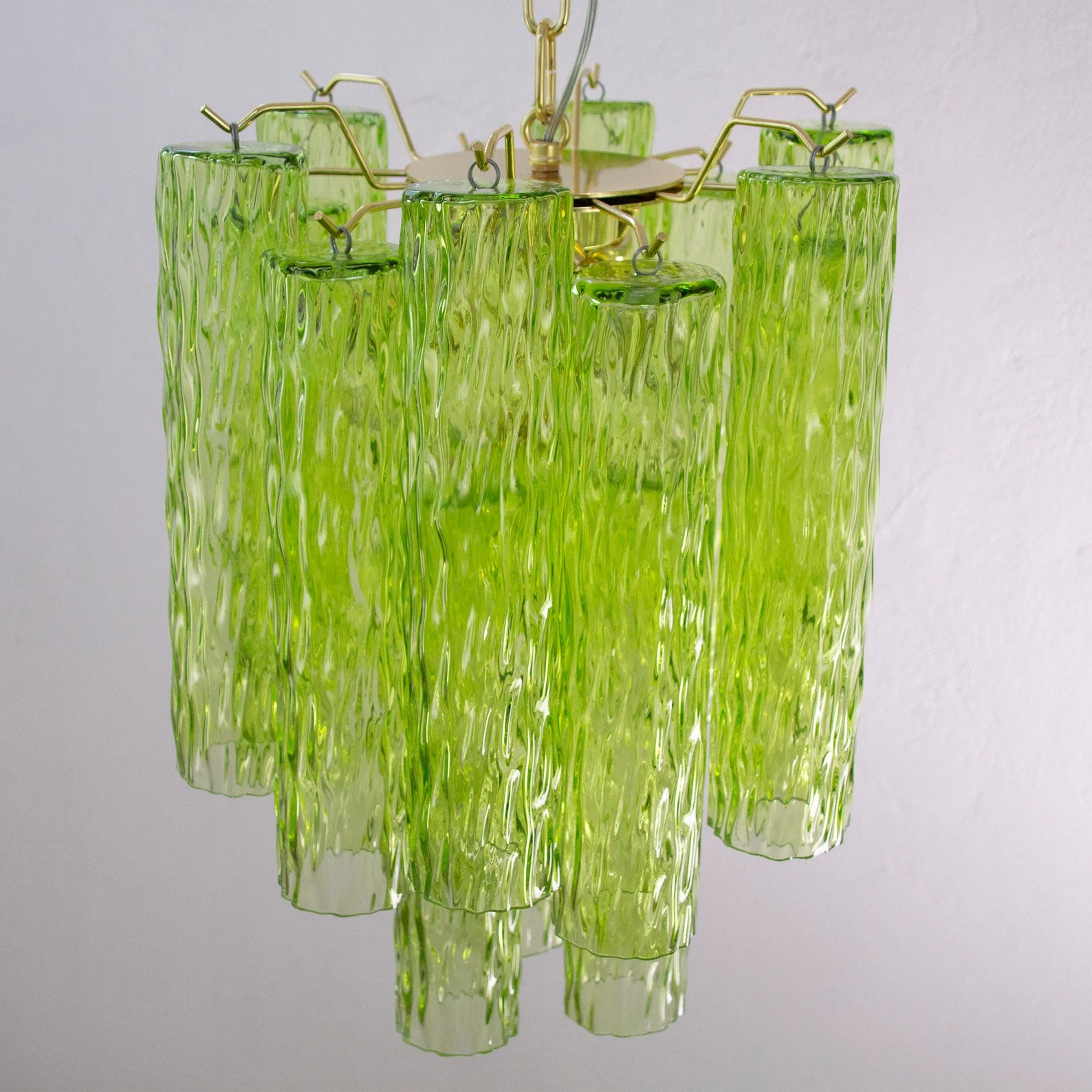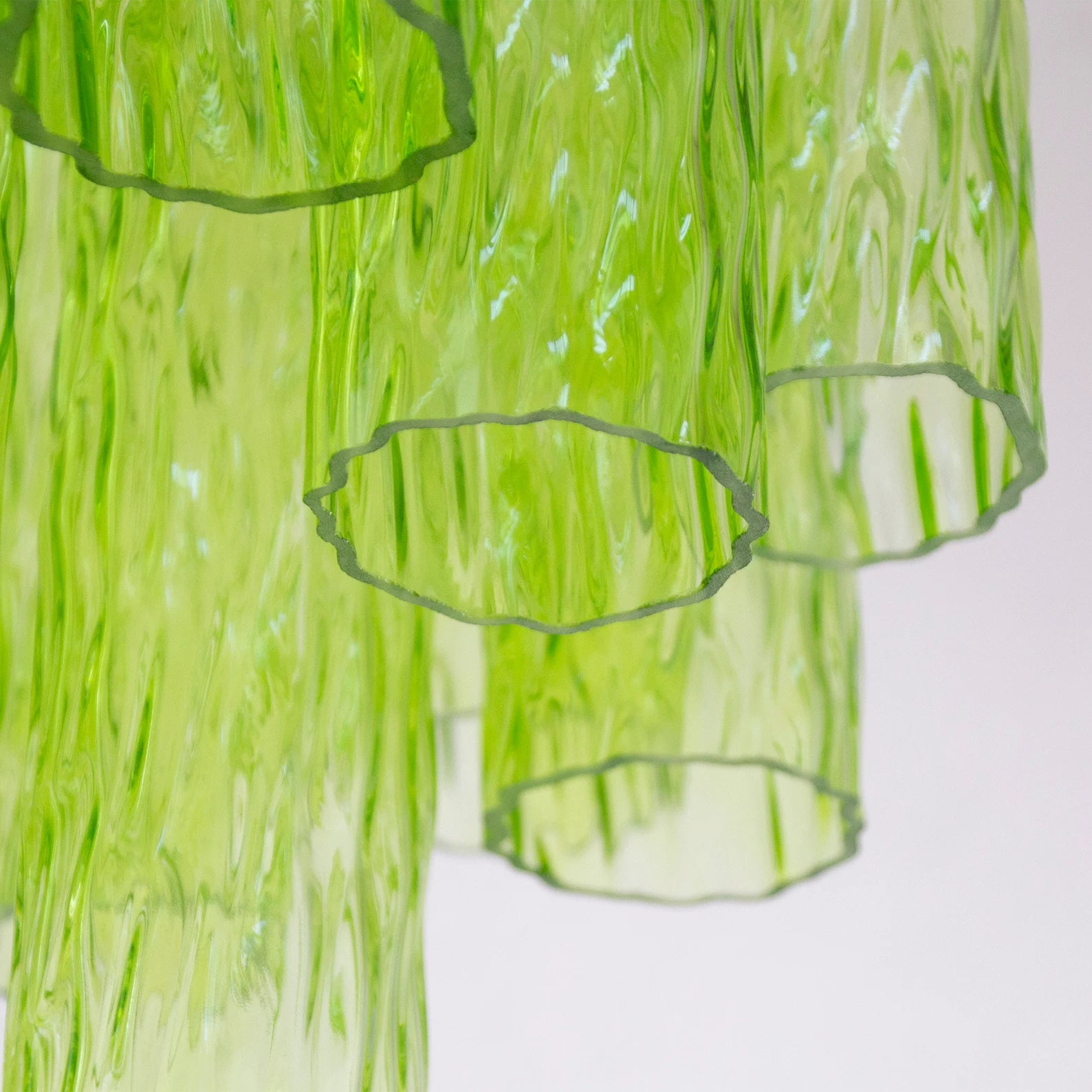 Spesifikasjoner: • Håndlaget i Murano, Italia • Farge: Apple Green (andre farger på forespørsel) • Dimensjoner: Ø40 × H45 cm + justerbar kjetting (opptil 50 cm) • Dekorative elementer: 15 glassrør + reservedel inkludert • Ramme: Nikkel eller messing • Lyskilder: 3 × E12/E14 (ikke inkludert)