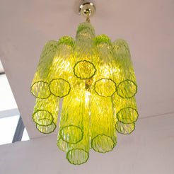 Murano Apple Green Tubes Chandelier Ø40 består av 15 munnblåste glassrør i en klar, frisk eplegrønn nyanse som gir et...