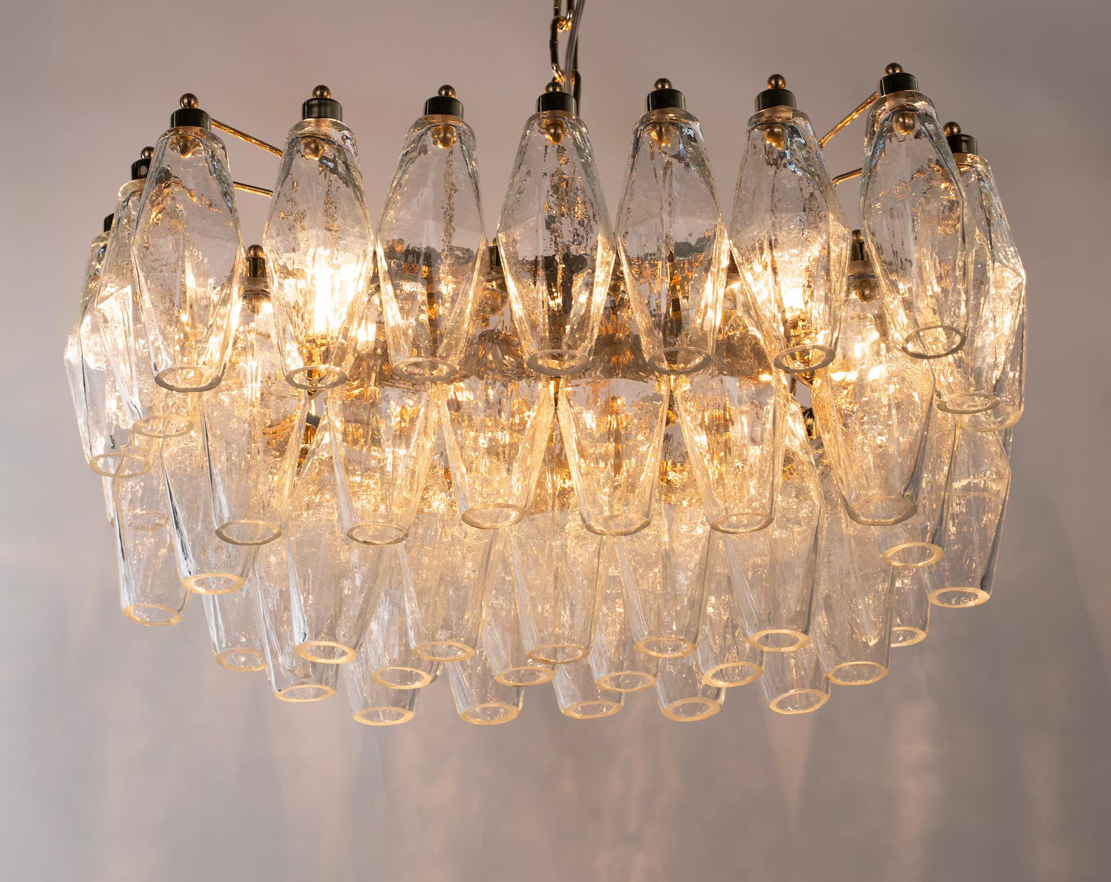 Alle våre lysekroner i ekte Murano-glass produseres for hånd ved vårt tradisjonsrike verksted i Venezia. Her blåses og formes hvert glass av italienske mestere med generasjoners erfaring – et ekte stykke håndverk og historie i hver lampe.