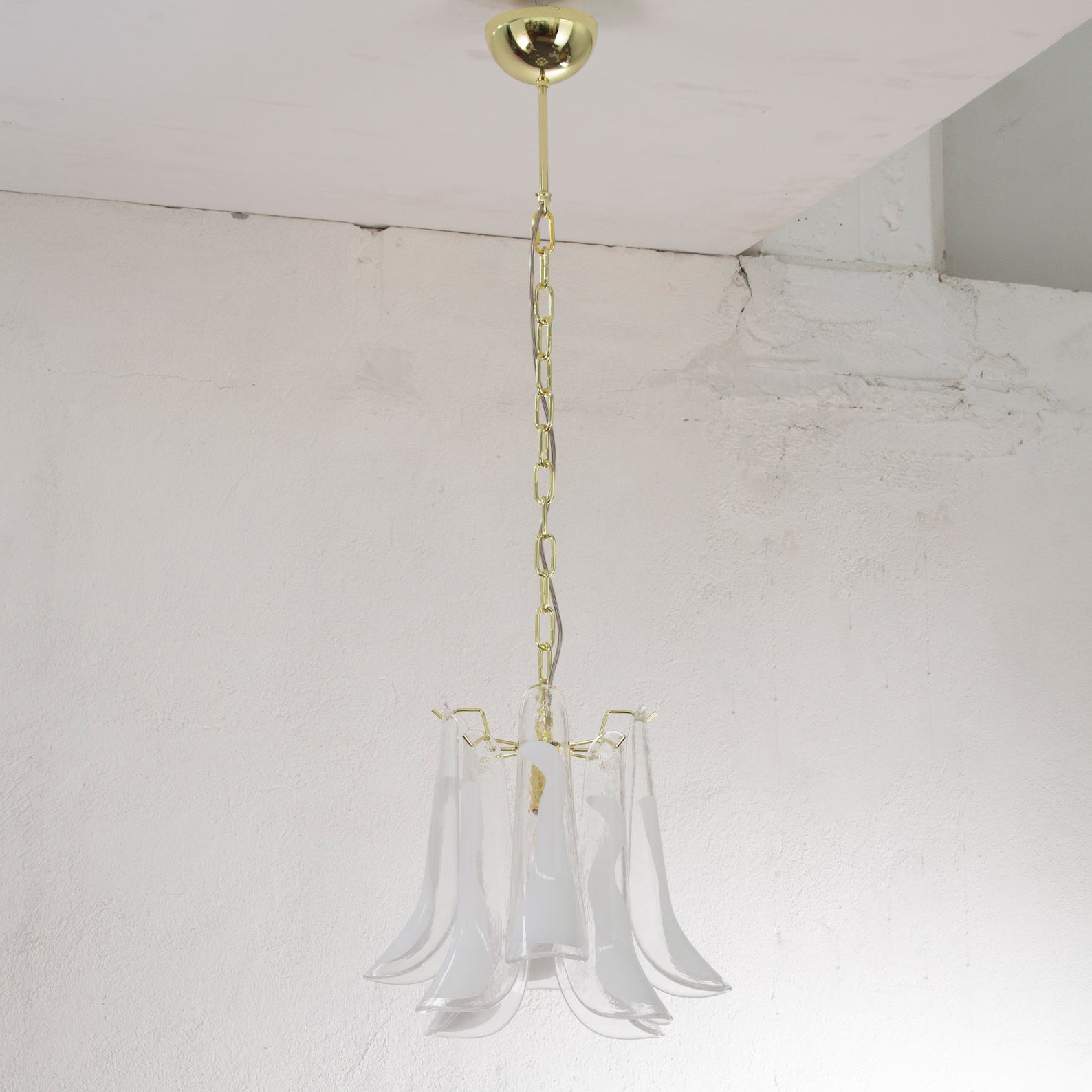 Spesifikasjoner: • Håndlaget i Murano, Italia • Farge: Crystal & hvitt Murano-glass • Dimensjoner: Ø33 × H34 cm + justerbar kjetting (50 cm) • Dekorative elementer: 8 glassblader + reservedel inkludert • Ramme: Messing eller nikkel • Vekt: ca. 7 kg • Lyskilde: 1 × E26/E27 (ikke inkludert) • Kjetting og takrosett inkludert • Levering: 6–8 uker ved spesialbestilling