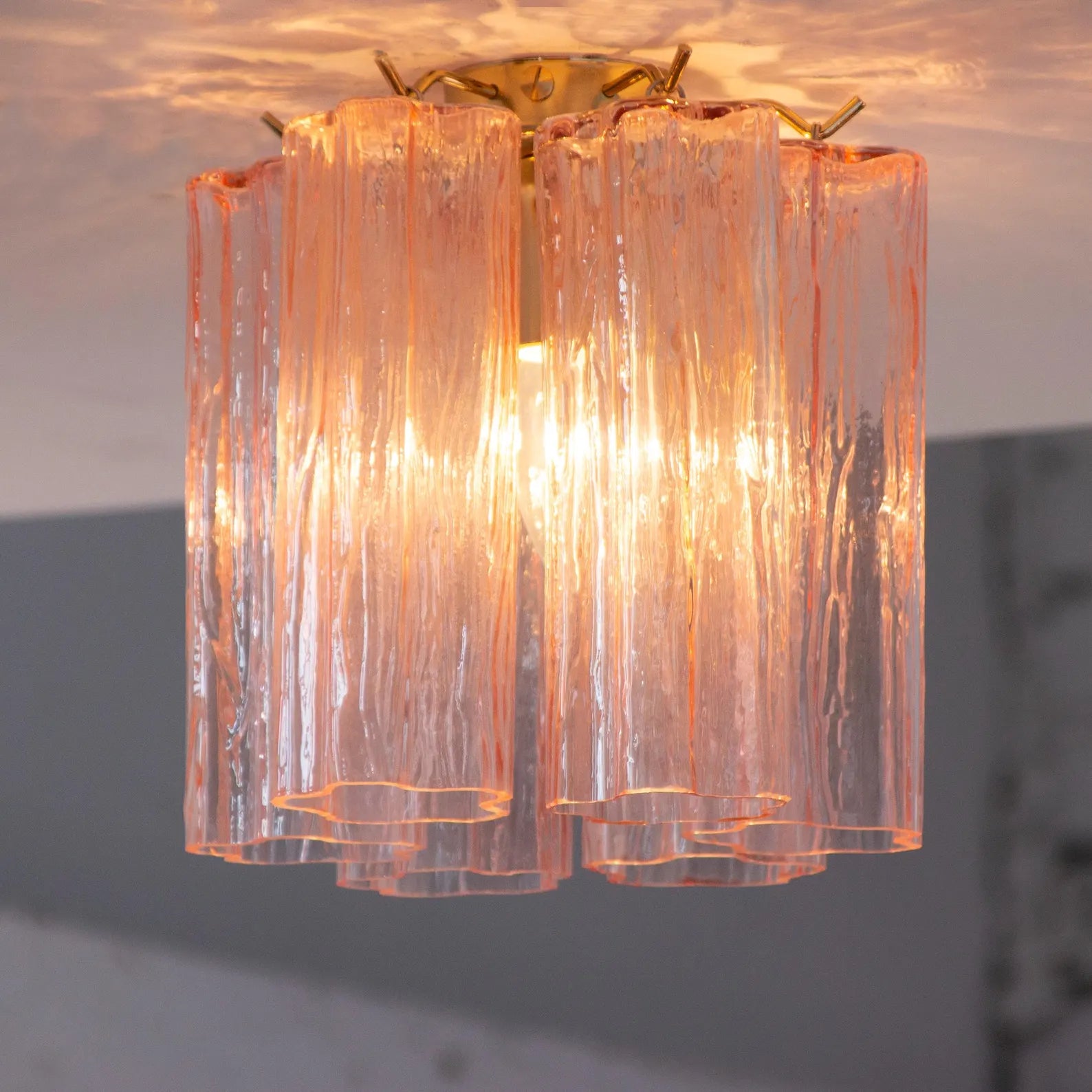 Et lite, men luksuriøst stykke Murano-glasskunst – ideelt for tak med lav høyde eller som del av et elegant belysningsoppsett.