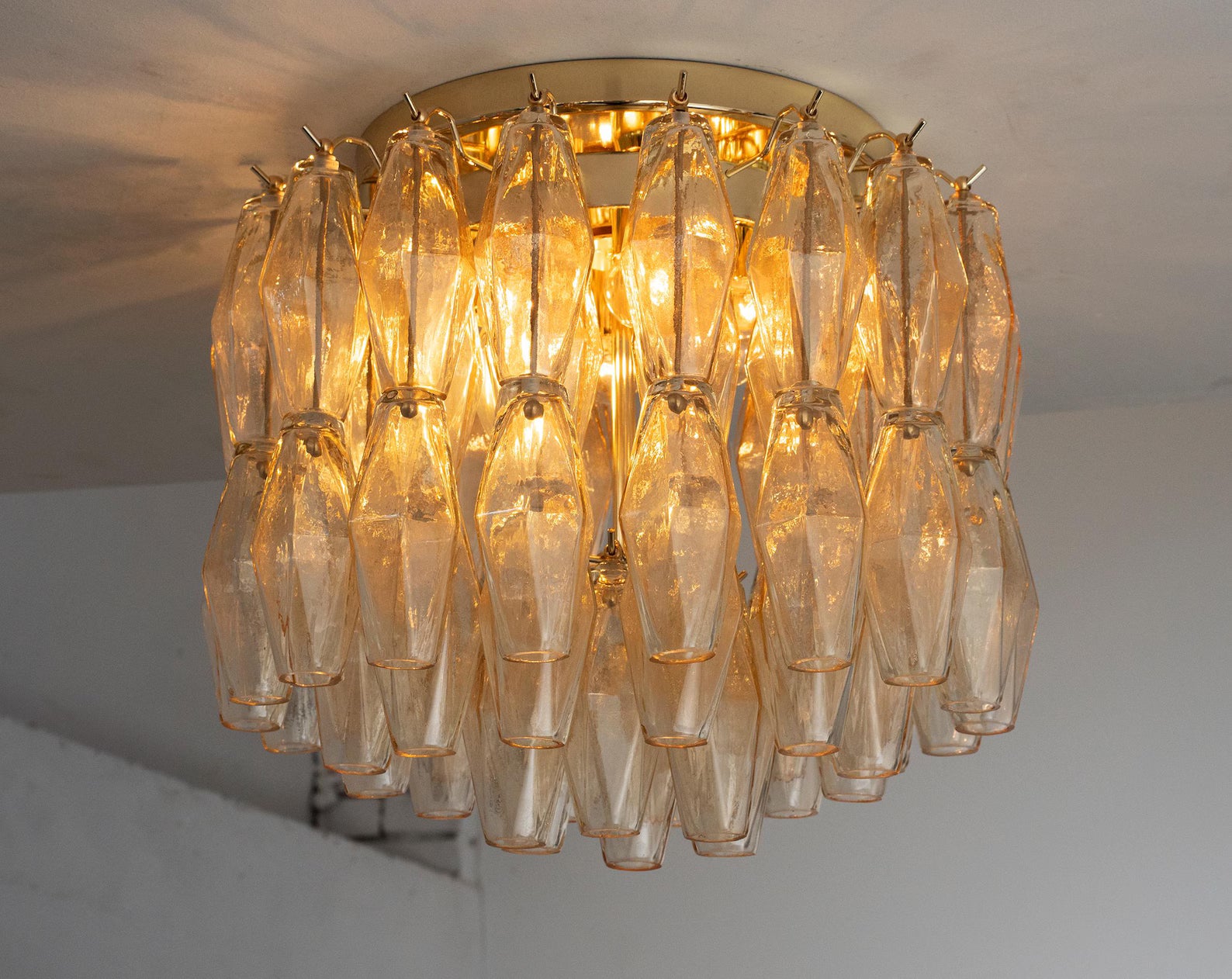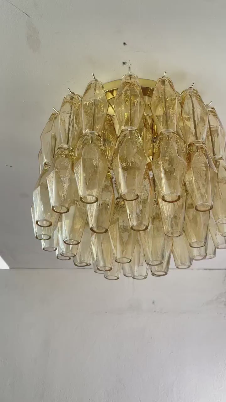 Et ikon av italiensk håndverk og tidløs design. Murano Clear Poliedri Chandelier er laget av munnblåst Murano-glass i en geometrisk konstruksjon som reflekterer lyset med en krystallklar glød. Den håndpolerte messingrammen tilfører varme og eleganse, mens den kompakte størrelsen gjør modellen perfekt over spisebord, i entré eller soverom.
