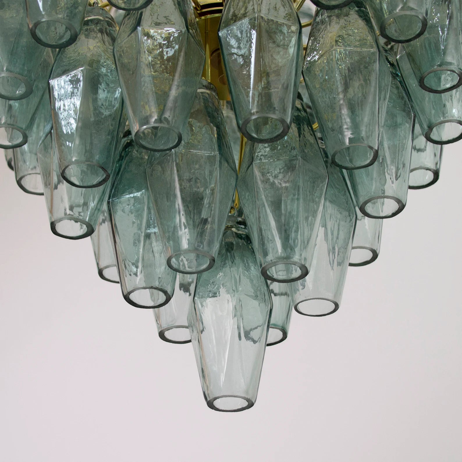 Murano Poliedri Chandelier Ø75 består av 143 munnblåste glasspolyedre i dypgrønn Verde Rialto Murano-glass. Hver polyeder er nøye formet for hånd og montert på en geometrisk metallramme som gir et luksuriøst og kunstnerisk uttrykk. Den grønne nyansen gir et elegant spill av lys og dybde – et perfekt midtpunkt som kombinerer naturens ro med italiensk raffinement.