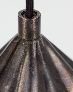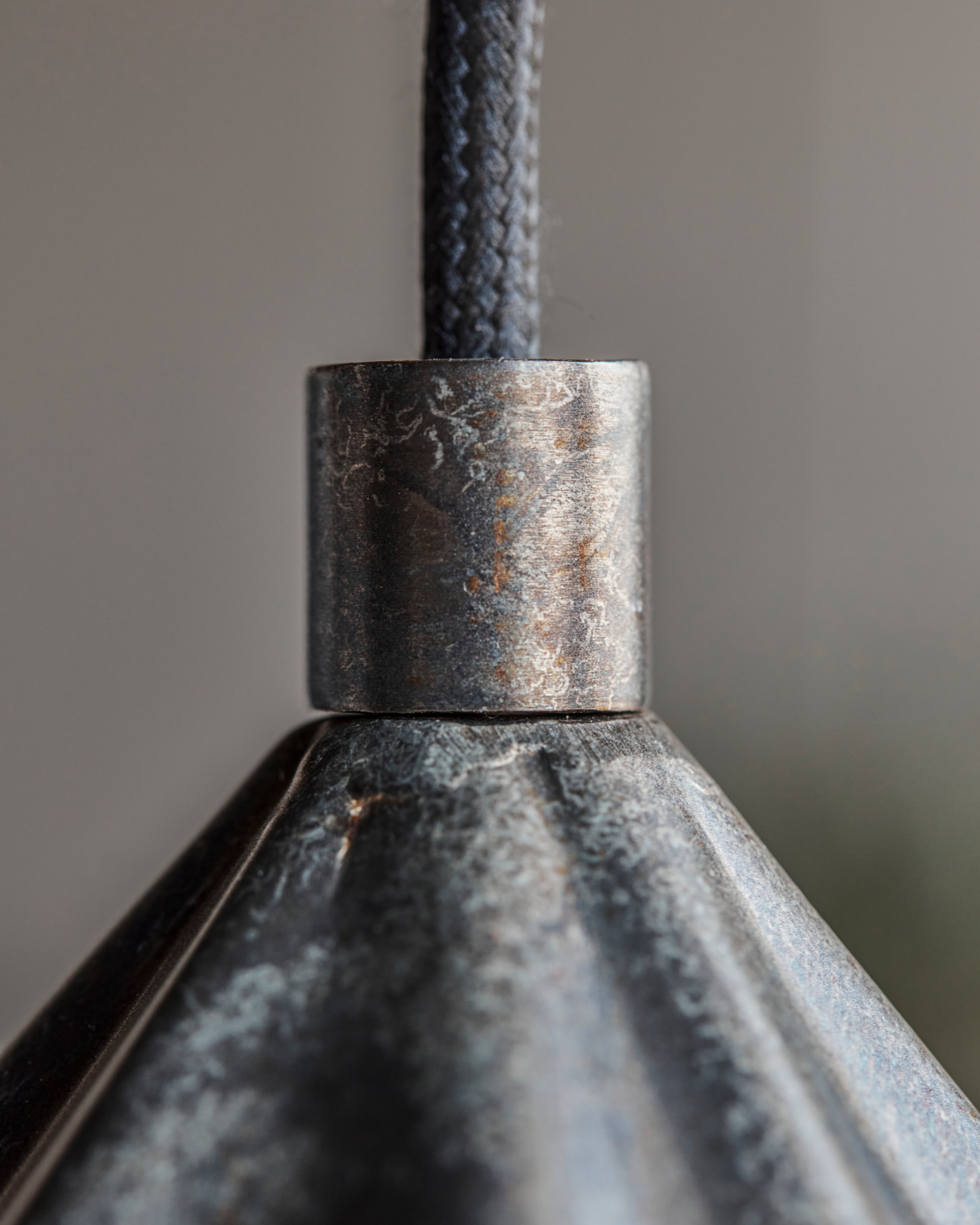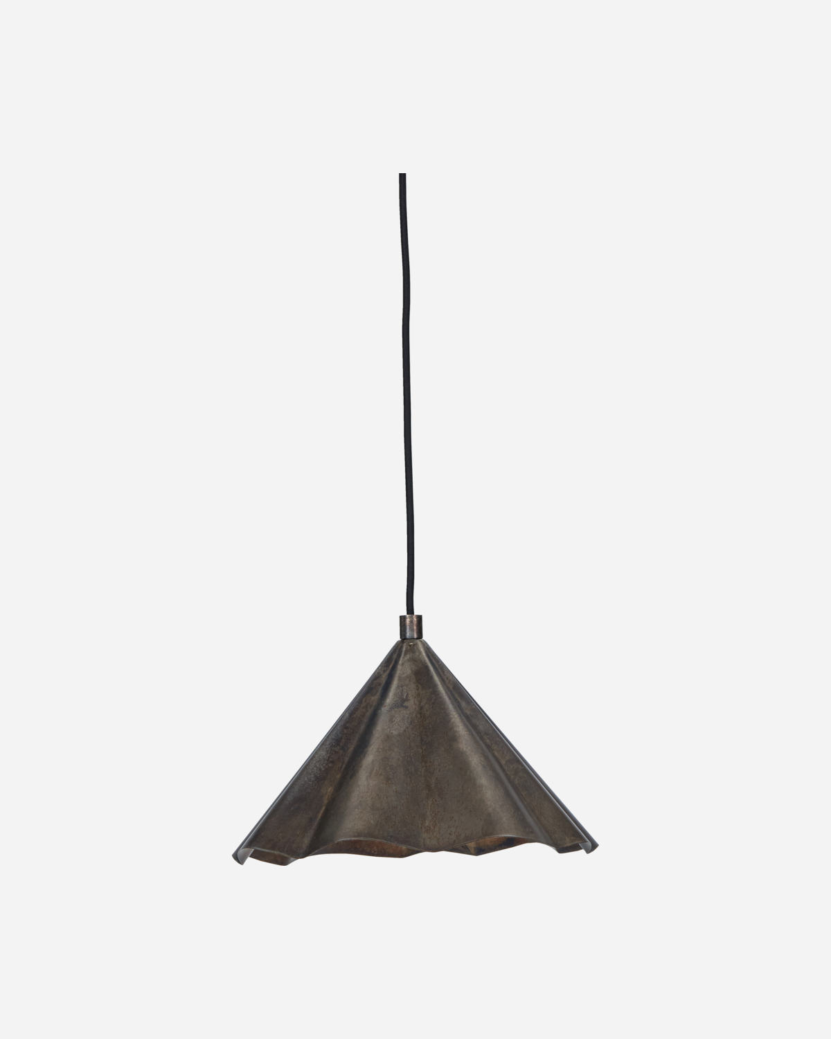 Gi hjemmet et løft med denne mindre pendellampen fra House Doctor. Den bølgete skjermen skaper et skulpturelt uttrykk som myker opp den industrielle, antikke finishen – en perfekt kombinasjon av rå eleganse og kunstnerisk form. Ideell over et lite spisebord, i gangen eller som dekorativ belysning i et hjørne.